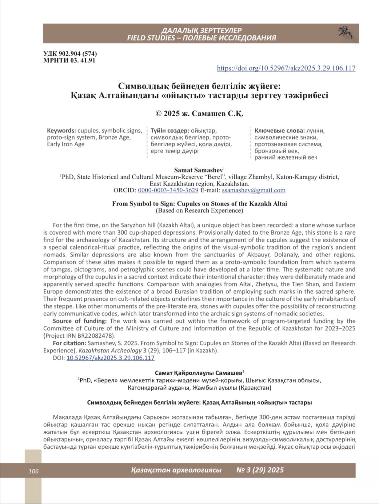 Символдық бейнеден белгілік жүйеге: Қазақ Алтайындағы "ойықты" тастарды зерттеу тәжірибесі
