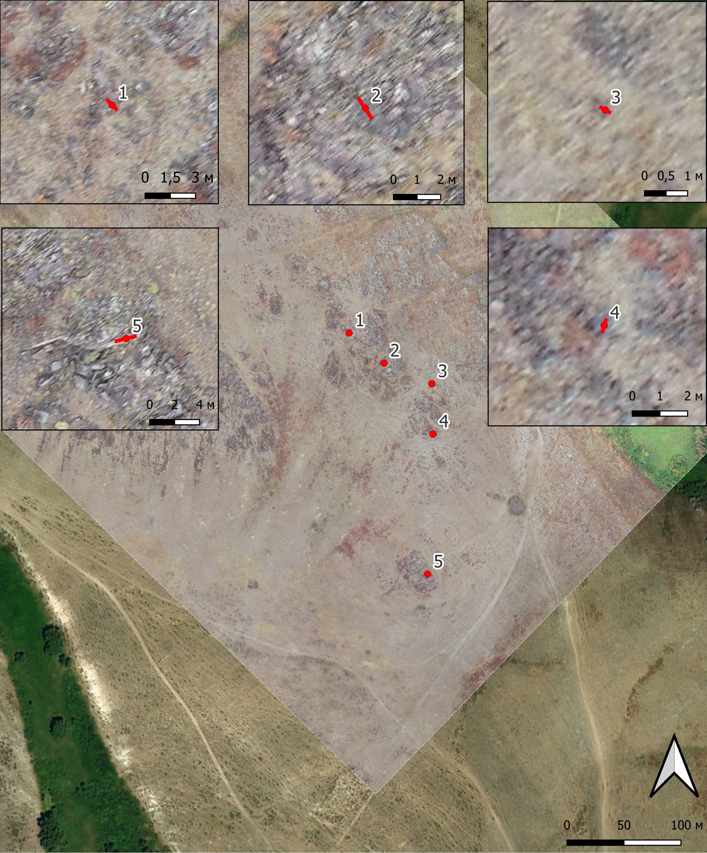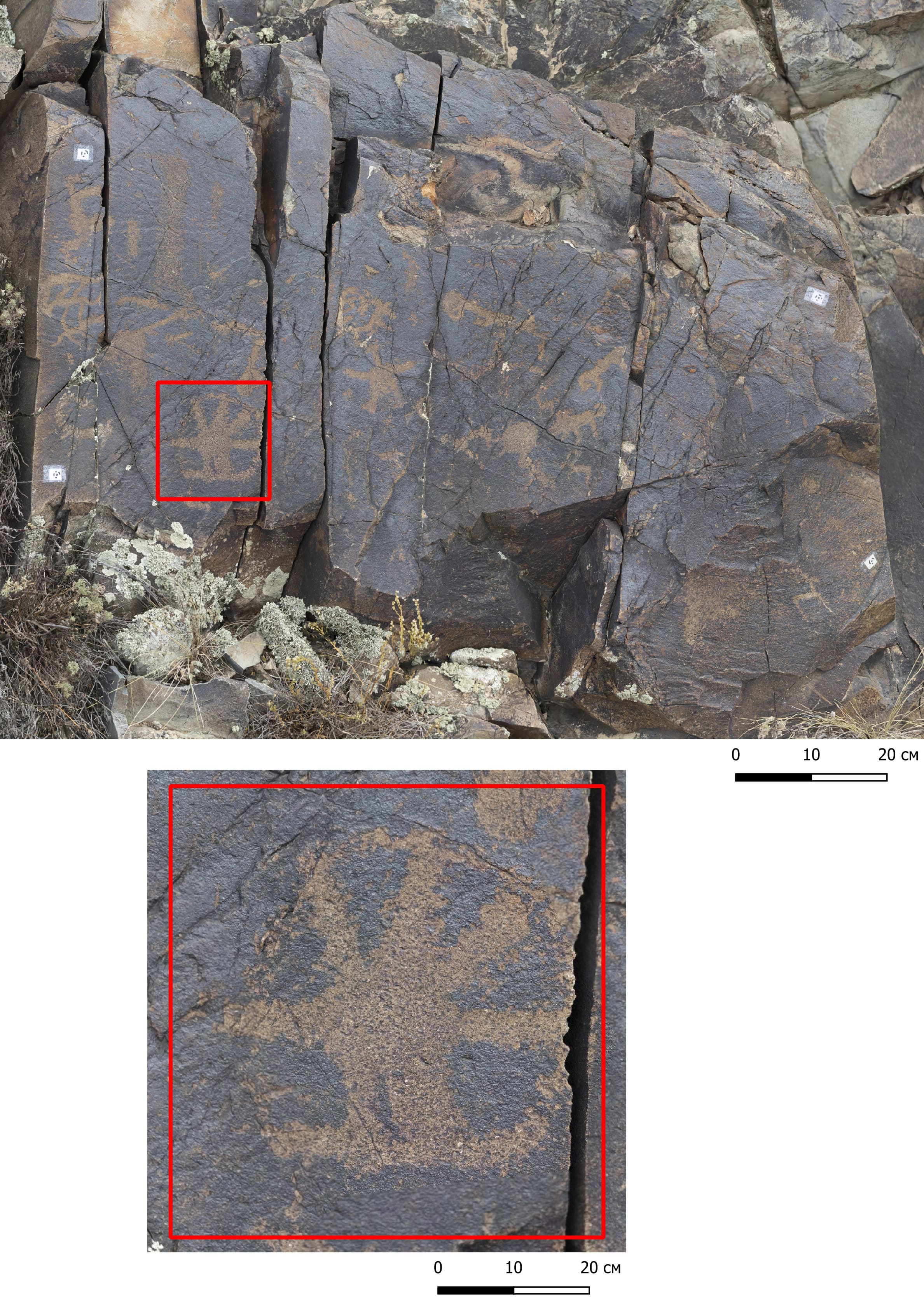 Петроглифы Мойнак (Рисунок 1). Петроглифы урочища Мойнак расположены в 2 км к северо-востоку от села Бесжылдык Курчумского района, на расстоянии около 30 км от места слияния рек Курчум и Иртыш. Основная концентрация петроглифов сосредоточена на пяти низких плосковершинных сопках.