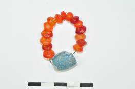 Қызыл және қызғылт сары түсті моншақтардан жасалған салпыншақ