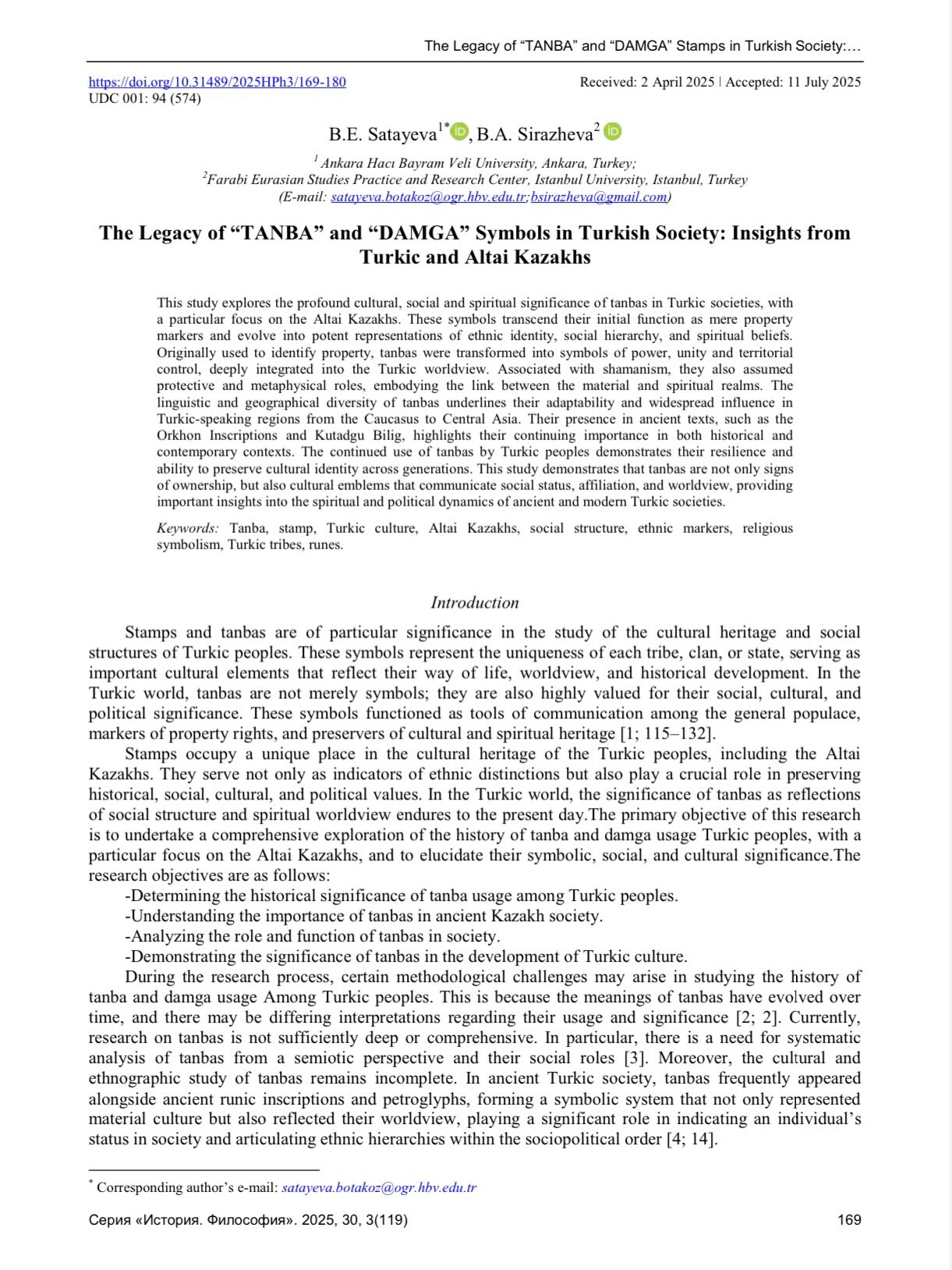 Түркі және Алтай қазақтарының мысалындағы көзқарас тақырыбындағы ғылыми мақалалары ҚР ҒЖБМ ҒЖБССҚК ұсынған Қарағанды университетінің Хабаршысы басылымында жарық көрді.