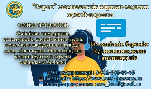 “Берел” мемлекеттік тарихи-мәдени музей-қорығының сыблайлас жемқорлыққа қарсы комплаенс қызметінің сенім телефоны