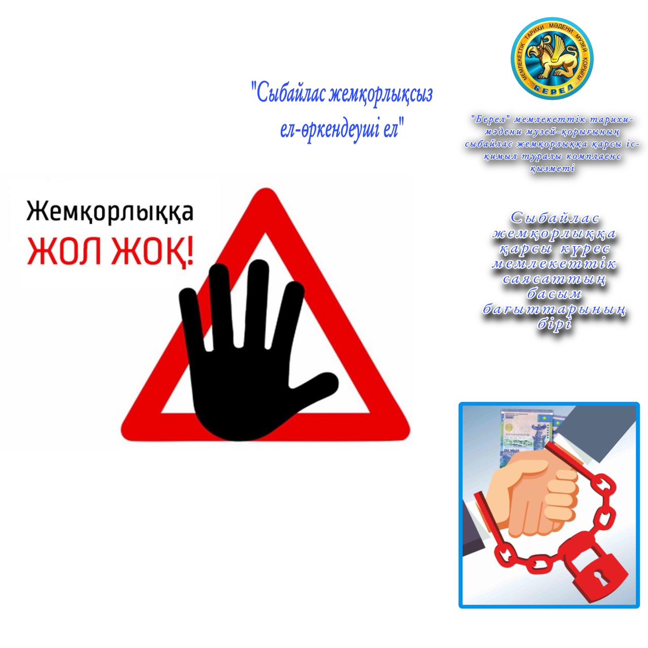 «Берел» мемлекеттік тарихи-мәдени музей-қорығының» Сыбайлас жемқорлыққа қарсы комплаенс – қызметкері 2023 жылдың 3 наурызында «Сыбайлас жемқорлыққа қарсы күрес мемлекеттік саясаттың басым бағыттарының бірі» атты тақырыпта іс-шара ұйымдастырды.