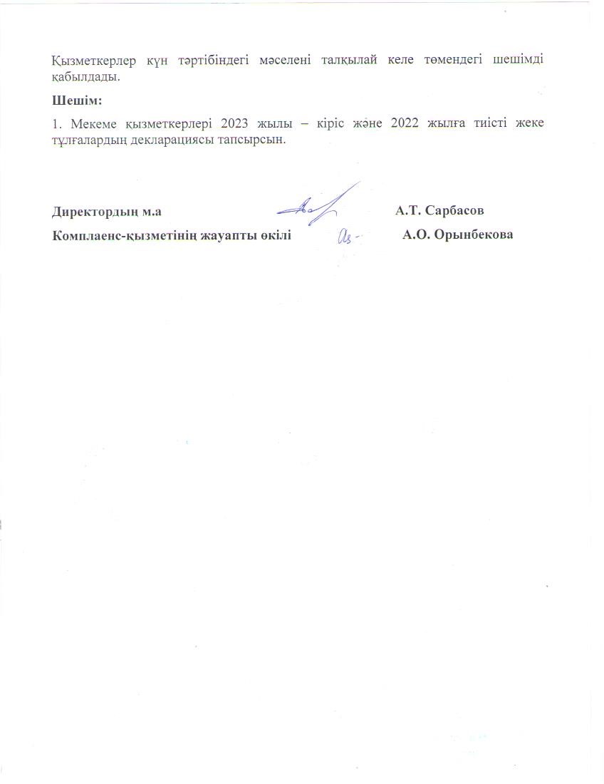 «Берел» мемлекеттік тарихи-мәдени музей-қорығының» РМҚК Сыбайлас жемқорлыққа қарсы комплаенс – қызметкері 2023 жылдың 23 ақпанында жиналыс өткізді.