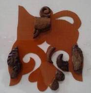 Фрагменты трехмерной подвески, состоящей из скульптурной головы грифона, барельефного изображения туловища фантастического кошачьего хищника, протом грифонов и четырехлепестковой пальметты