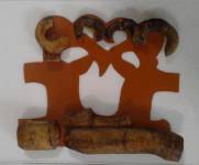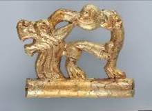 Подвеска с изображением сцены терзания кошачьим хищником горного козла - реставрационная реконструкция плакировки конского украшения